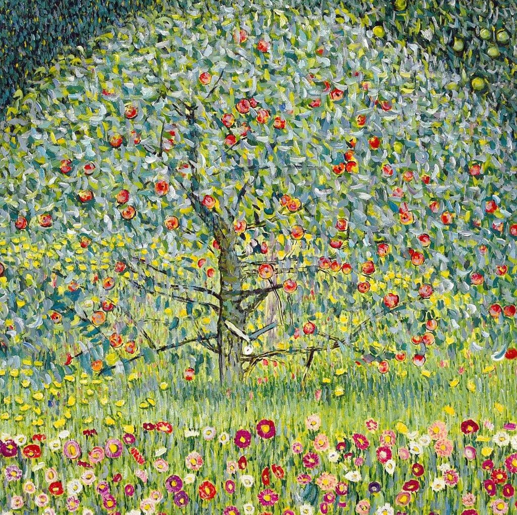 Wann dieses Gemälde wirklich entstand ist umstritten, manche behaupten 1906/07, andere schließen das aber wieder komplett aus und stimmen eher den Meinungen um 1911/12 zu. Jedoch ist klar, dieses Gemälde war an einen echten Apfelbaum angelehnt. Der Apfelbaum gilt seit Urzeiten als mythologisches Symbol des Lebens und der Liebe, der Fruchtbarkeit und des Weiblichen. Klimts “Apfelbaum I” strahlt eine feierliche Monumentalität aus.